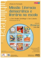 | Leia mais |  | Oficina de formação “Missão. Literacia democrática e literária na escola”A oficina de formação “Missão. Literacia democrática e literária na escola” realiza-se no próximo dia 28 de março, sábado, entre as 14h30 e as 18h00, na Biblioteca Municipal Gustavo Pinto Lopes e propõe uma reflexão sobre a relação entre educação artística, leitura e qualidade democrática....